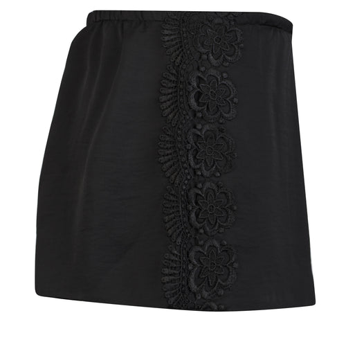BLACK SATIN AND VENICE LACE TRIM SHORTS